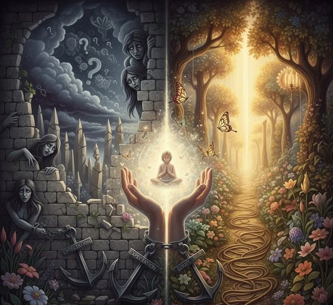 Of course, with daily deep ego dissolution meditation to dissolve these aggregates, we can eventually reach the stage in which these thoughts no longer even ARISE. But we must begin by seeing and understanding what they are. We must take the strong resolve to break free and remain free, not through suppression or pretending, not through a dead system of rules, but through true and consistent inner work.