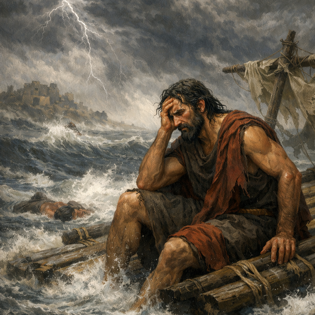 It is especially at this point in the journey, that the hero of the story will begin to doubt. This is the commonality we observe in every fairytale, every journey-myth, every trope. How does it go? Just how it goes in The Odyssey, Book 5 (Samuel Butler, 1900 translation) when Odysseus leaves Calypso and his raft is destroyed by Poseidon (a symbol of our own inner demons and darkness with which we must contend in any spiritual path towards wholeness) he cries out in despair.